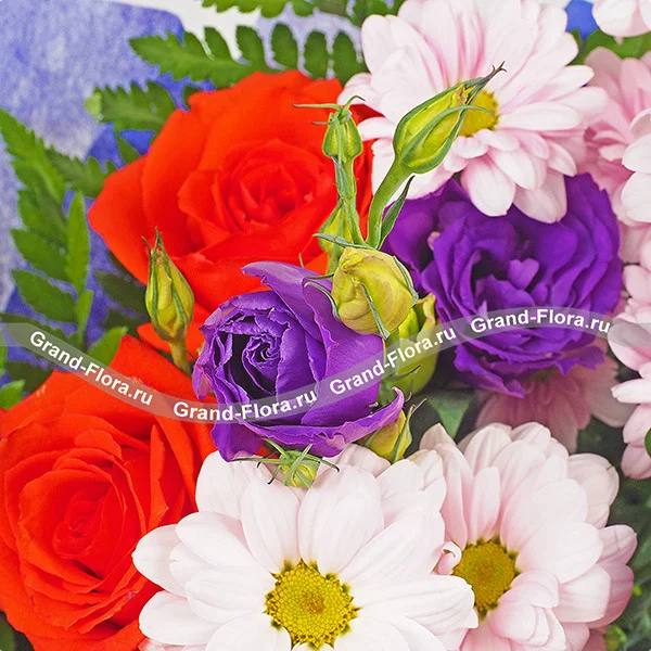 Поздравления с днем рождения станет ярче, если к подарку и приветственным речам добавить букет цветов из роз и хризантем. Такой букет будет радовать Вас не меньше 5 дней*.